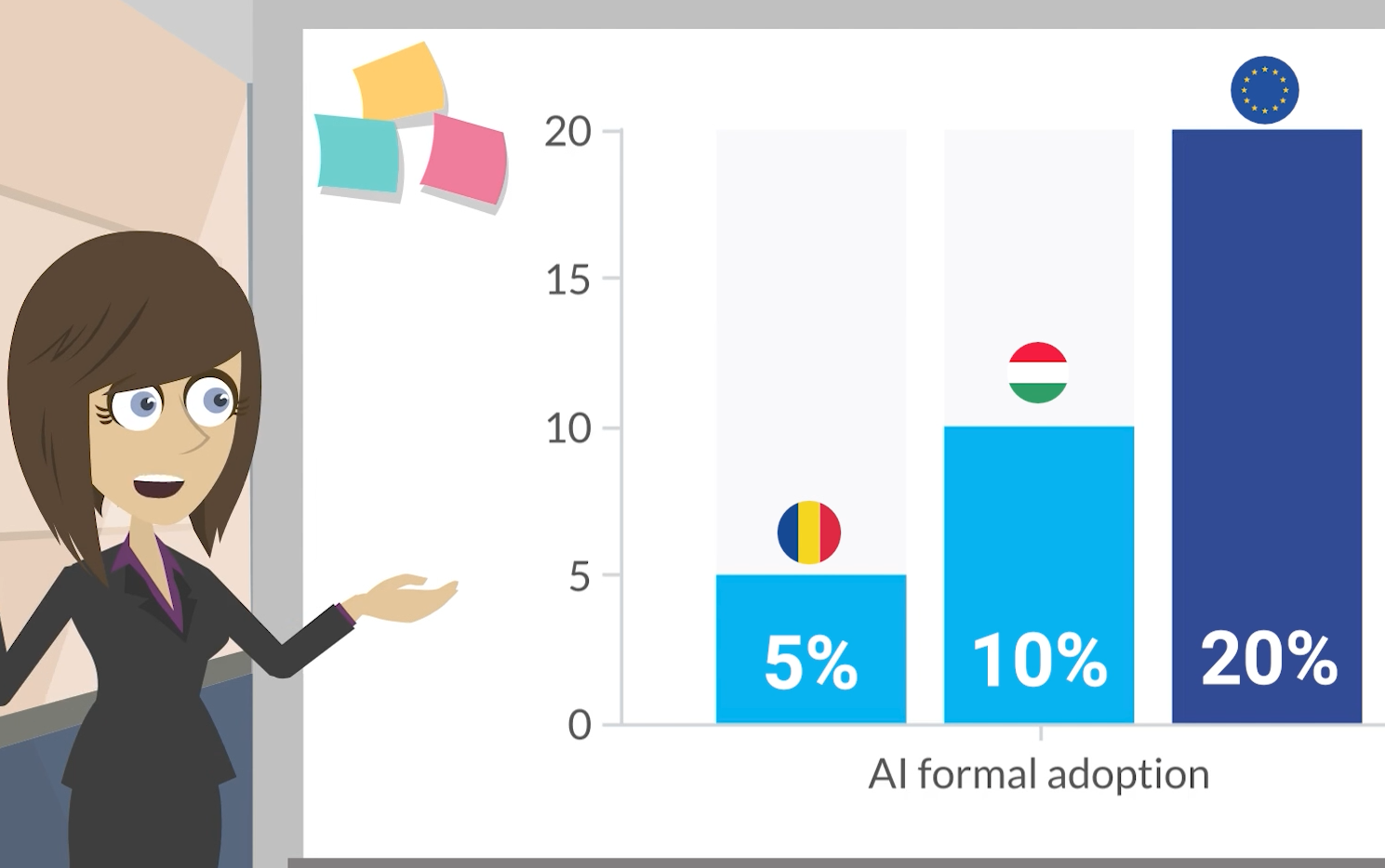 Procesul nu este uniform. La nivel organizațional, reacțiile variază între interes și rezistență, iar principalele provocări țin de competențe digitale, infrastructură de date și alocarea resurselor. În același timp, analizele din cadrul Hope4AI evidențiază abordări complementare: în România, accentul cade pe leadership și direcție strategică, în timp ce în Ungaria prioritare sunt formarea și dezvoltarea competențelor.
