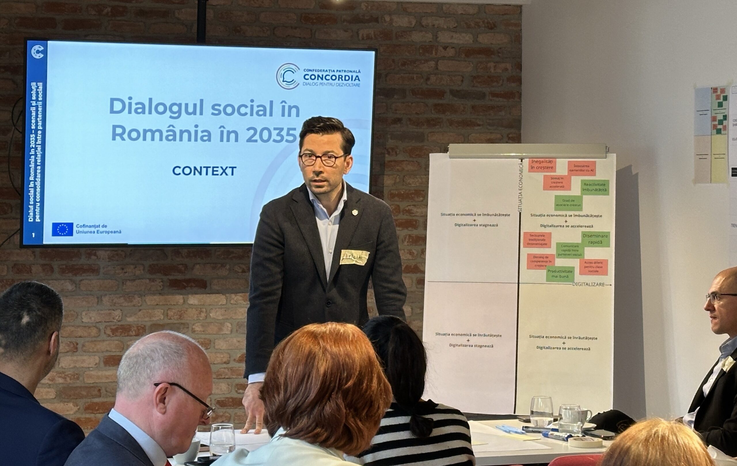 În data de 4 aprilie 2025, Confederația Patronală Concordia a organizat un workshop de co-creație, prin care, sub forma unui exercițiu colaborativ, participanții, parteneri sociali și autorități, au contribuit la elaborarea unor scenarii pentru viitorul dialogului social național în următorii 10 ani, identificând tendințele și factori cheie care vor influența cadrul dialogului social și al negocierilor colective din țară.